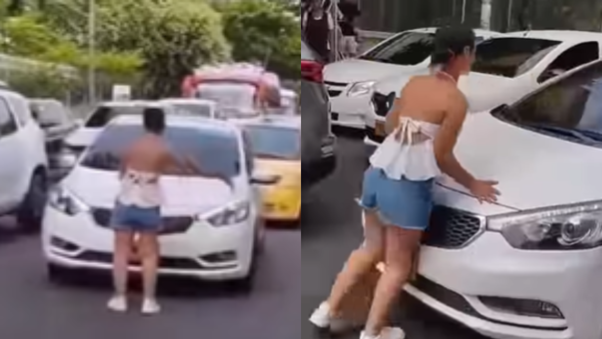 El incidente, que se volvió viral en las redes sociales, muestra a la mujer obstaculizando el paso de un vehículo blanco en el que, se presume, se encontraba su pareja en una situación comprometedora. A pesar de los intentos del conductor por avanzar, la mujer se interpuso en el camino y se aferró al capó del automóvil, impidiendo que este avanzara y manifestando su gran furia.