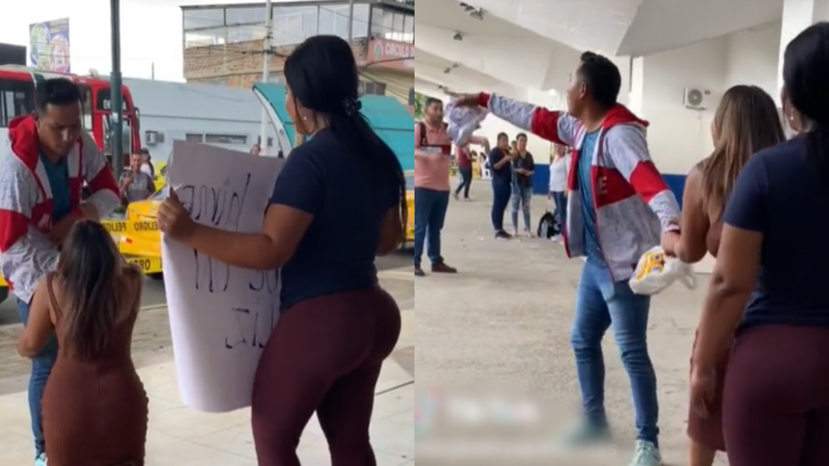 La escena se llevó a cabo en una estación de buses, a donde llegó la mujer a pedirle perdón a quien sería su pareja por haberle sido infiel con su cuñado.