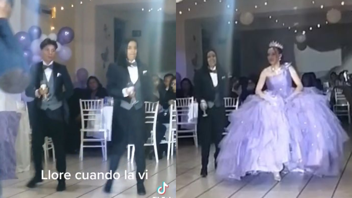 El conmovedor video, lo compartió una asistente al evento, asegurando que se le aguaron los ojos cuando vio a su tía vestida de chambelán y salvando la fiesta. ¡Toda una heroína!