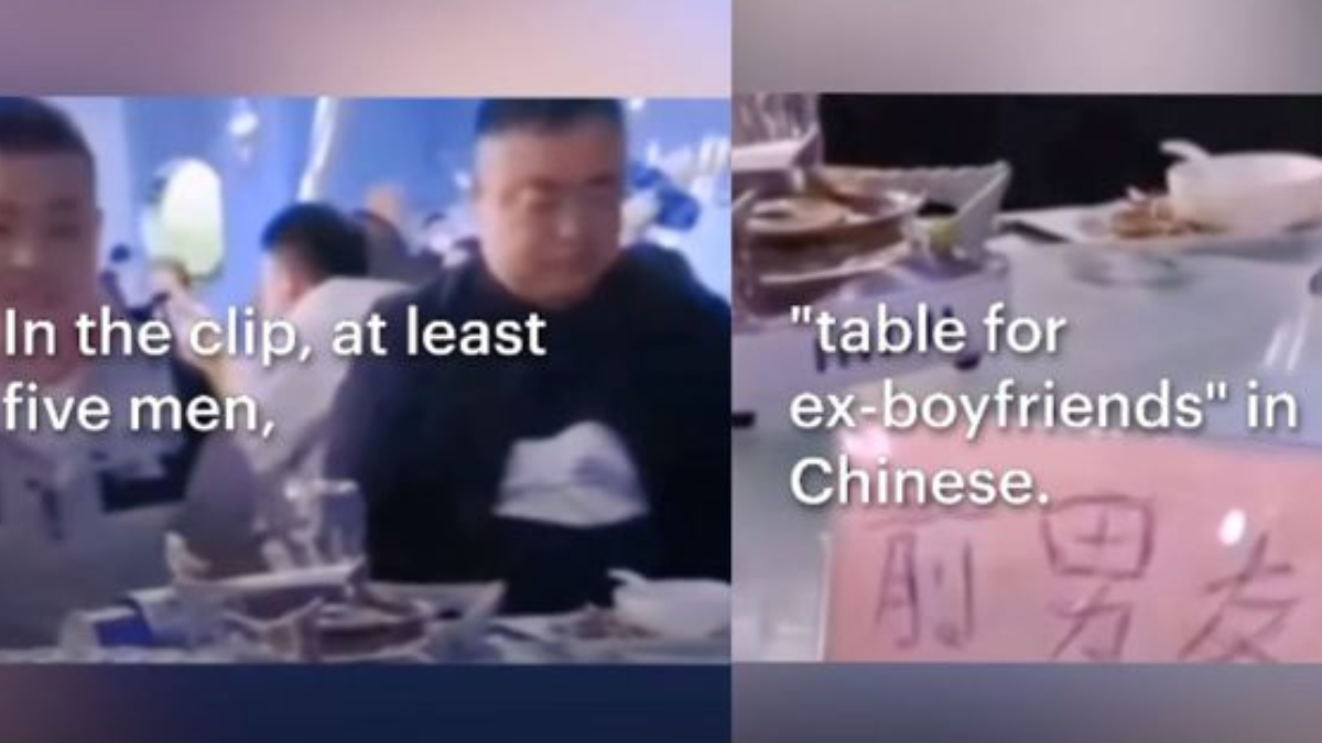 La grabación, que fue publicada en el microblogging chino Weibose y luego replicada en el canal de YouTube ‘Today’, se puede observar a un grupo de hombres sentados en una mesa enfrente de una nota que decía “mesa para exnovios”.