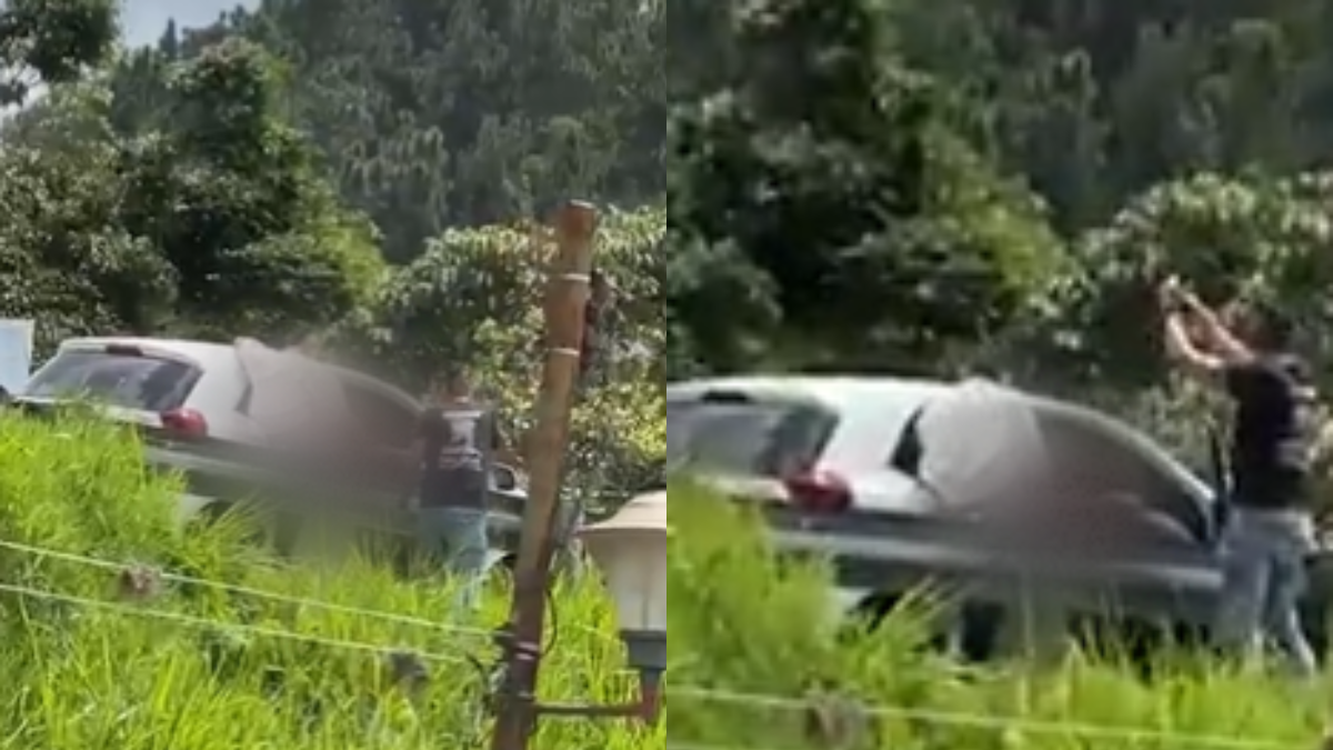 El obsceno acto sucedió a un costado de la vía que conduce al Aeropuerto Internacional de Palonegro, en Bucaramanga, donde los sujetos parquearon su vehículo y se dispusieron a grabar la escena sexual.