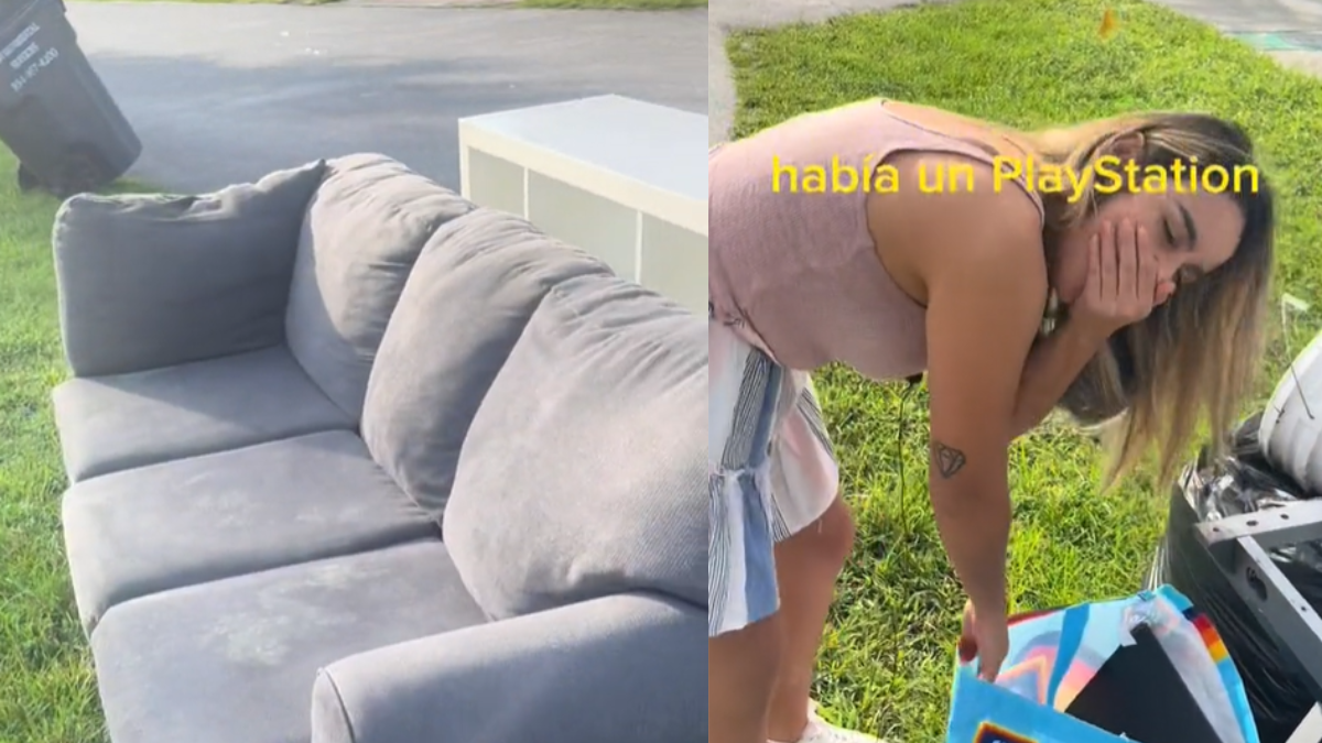 En el primer video, la mujer se encontró con sillas para exteriores, un comedor en vidrio y hasta un ventilador que parecía estar nuevo, incluso estaba en la caja original. Asimismo, se encontró con un sofá enorme en excelente estado.
