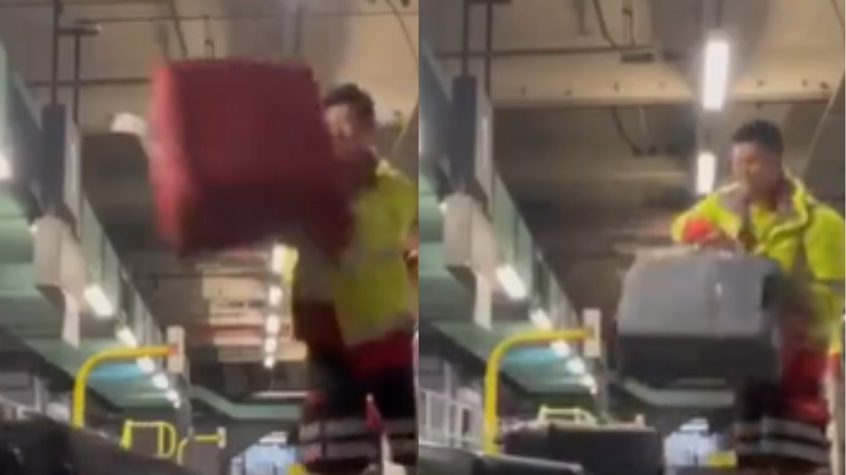 En las imágenes, capturadas por una fuente anónima, se puede observar a trabajadores del aeropuerto sacando las maletas del carro de carga y arrojándolas sin cuidado en las bandas en las que los viajeros las recogen.