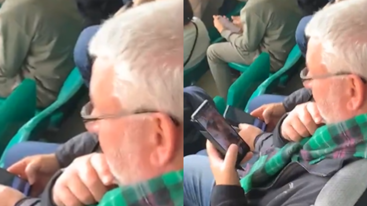 El video, que ya suma más de 18 millones de reproducciones en X, se logra observar que el adulto mayor está completamente concentrado en el contenido de su celular dejando de lado lo que está sucediendo en la cancha del estadio.