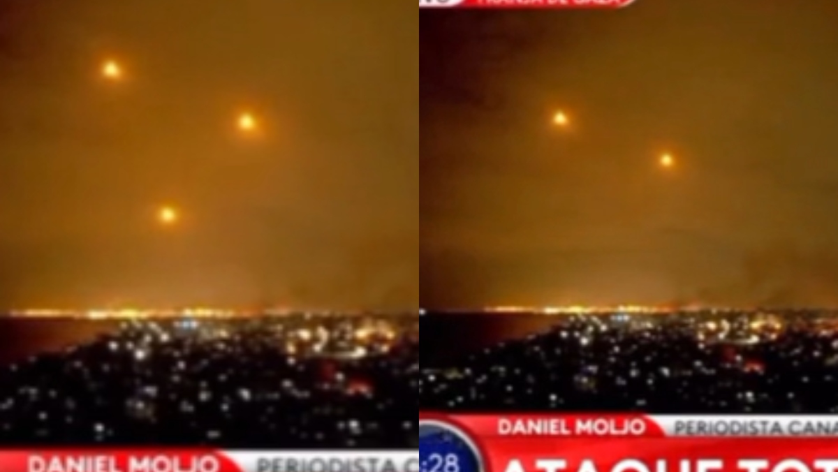 Mientras los periodistas hacían un análisis de lo que podría estar sucediendo con el conflicto, aparecieron lo que muchos dijeron que eran ovnis. En el cielo se alcanzó a percibir tres luces que formaron un triángulo.