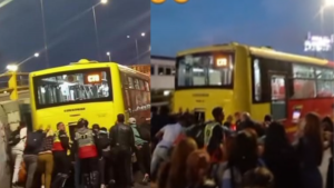 Ante la petición del funcionario, los pasajeros hicieron caso y se bajaron del bus. Sin embargo, solo cerca de 10 personas ayudaron a empujar el biarticulado. La particular escena quedó registrada en un video que generó toda clase de reacciones.