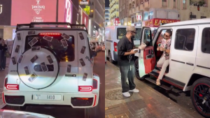 Del automóvil tipo SUV, salió un hombre que acentúa con sus manos que la persona es libre de llevarse el celular que tomó. Ante lo llamativo que es esto, muchos usuarios creen que puede tratarse de una estrategia de marketing, algo que no suena del todo descabellada.