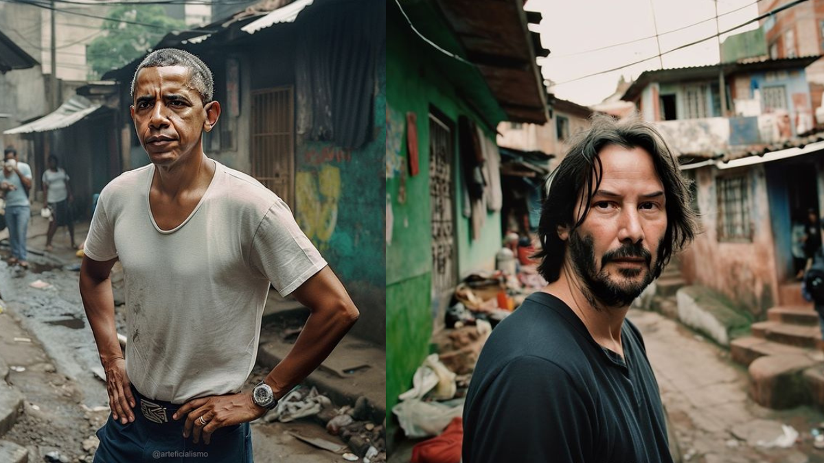 “celebridades que lo perdieron todo y ahora viven en una favela brasileña”, fue el mensaje con el que el amante de la inteligencia artificial acompañó la publicación de las imágenes.