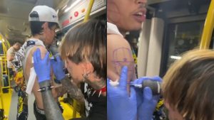 En un video que se volvió tendencia en redes, se puede ver que unos jóvenes decidieron hacerse un tatuaje en los articulados de TransMilenio. Lo hicieron mientras los buses iban en movimiento y también en las estaciones.