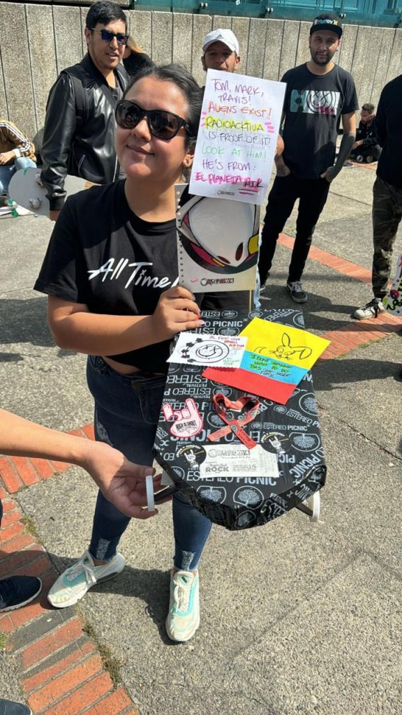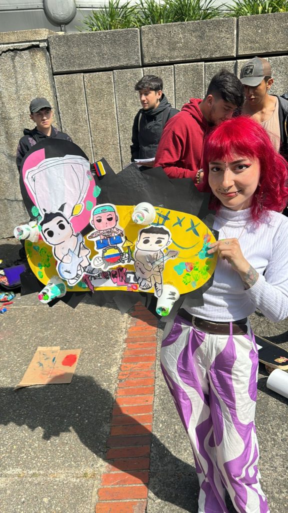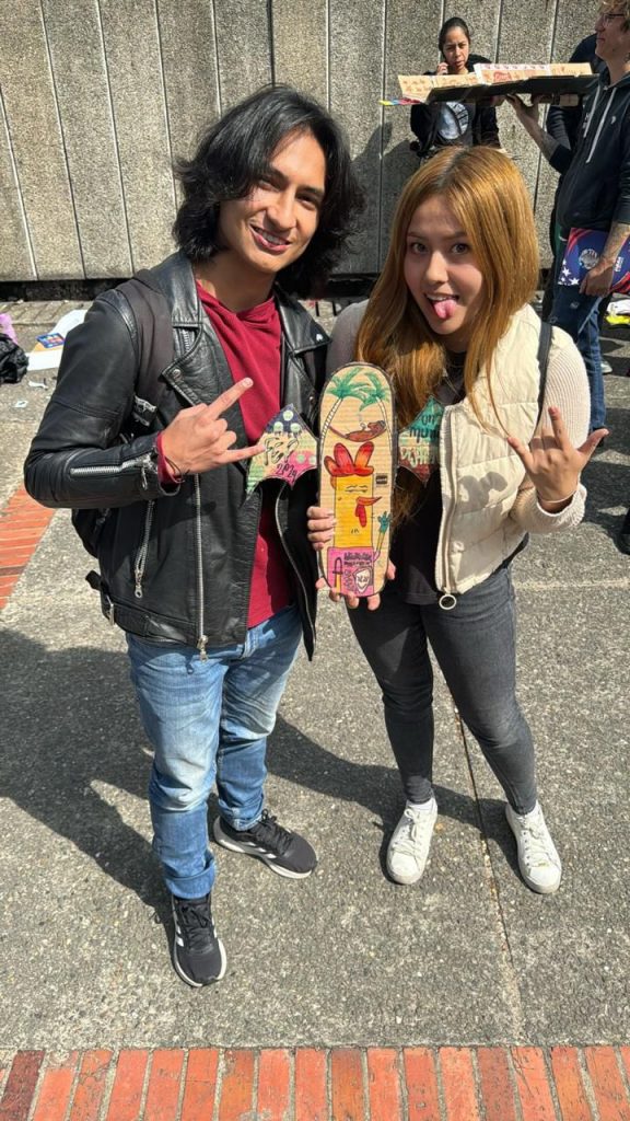 Nos encontramos en Maloka, en Bogotá y llegaron oyentes que querían ir a Blink-182. Allí vimos todo tipo de creaciones. Los fanáticos se inspiraron en la banda que llegará por primera vez a Colombia para hacer sus patinetas.