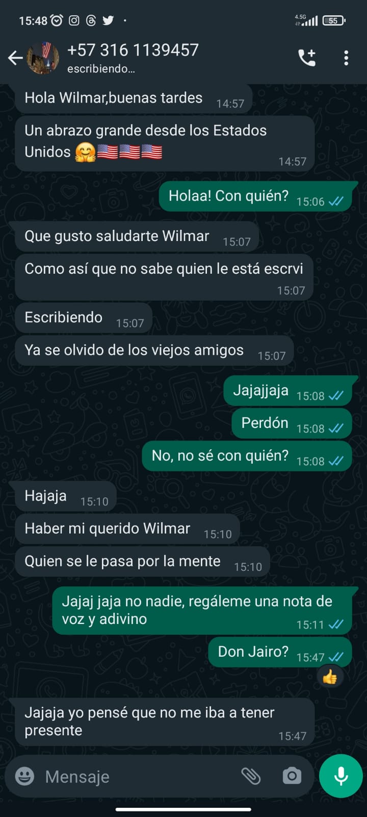 Después de eso, el sujeto le dijo lo siguiente: “Cómo así que no sabe quién le está escribiendo. ¿ya se olvidó de los viejos amigos?”.