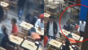 Según se pudo ver en un video de las cámaras de seguridad de un establecimiento, una familia llegó al lugar y se sentó en una mesa que había. En ese momento, también ingresan dos personas, vestidas de traje en la mesa de la parte de atrás.