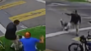 El episodio ocurrió en el barrio Bella Suiza de la capital colombiana. En las imágenes, se observa cómo un ladrón se aproxima sigilosamente a un transeúnte, amenazándolo con un arma blanca para despojarlo de sus pertenencias. Sin embargo, lo que el delincuente no esperaba era la valiente intervención de la mascota de su potencial víctima.