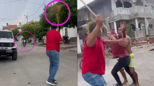 El ladrón no se daba por vencido y pretendía escapar nuevamente, pues se levantó rápidamente y prendió el motor, sin embargo, la comunidad lo rodeó y empezó a golpear con la escoba y peinilla.