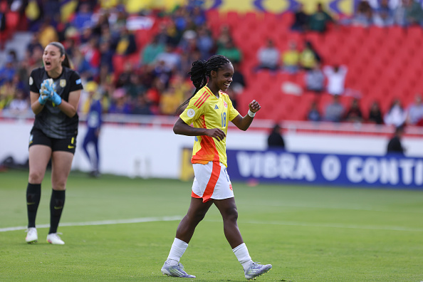 Linda Caicedo definió en el área luego de un pase de Mayra Ramírez y marcó el 1-0 ante Brasil.