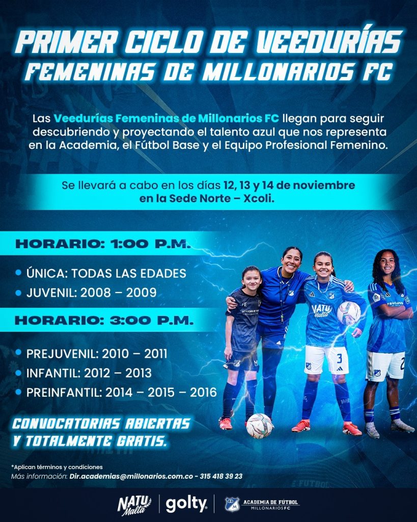 Las participantes deben tener además de talento, actitud, una buena dinámica en equipos y sobre todo amor y pasión por los colores azul y blanco. Millonarios FC promete que la experiencia de ser parte del equipo es única, cuenta con entrenadores calificados, proyección a torneos nacionales e interclubes y un entorno que impulsa el desarrollo humano y futbolístico de cada jugadora.