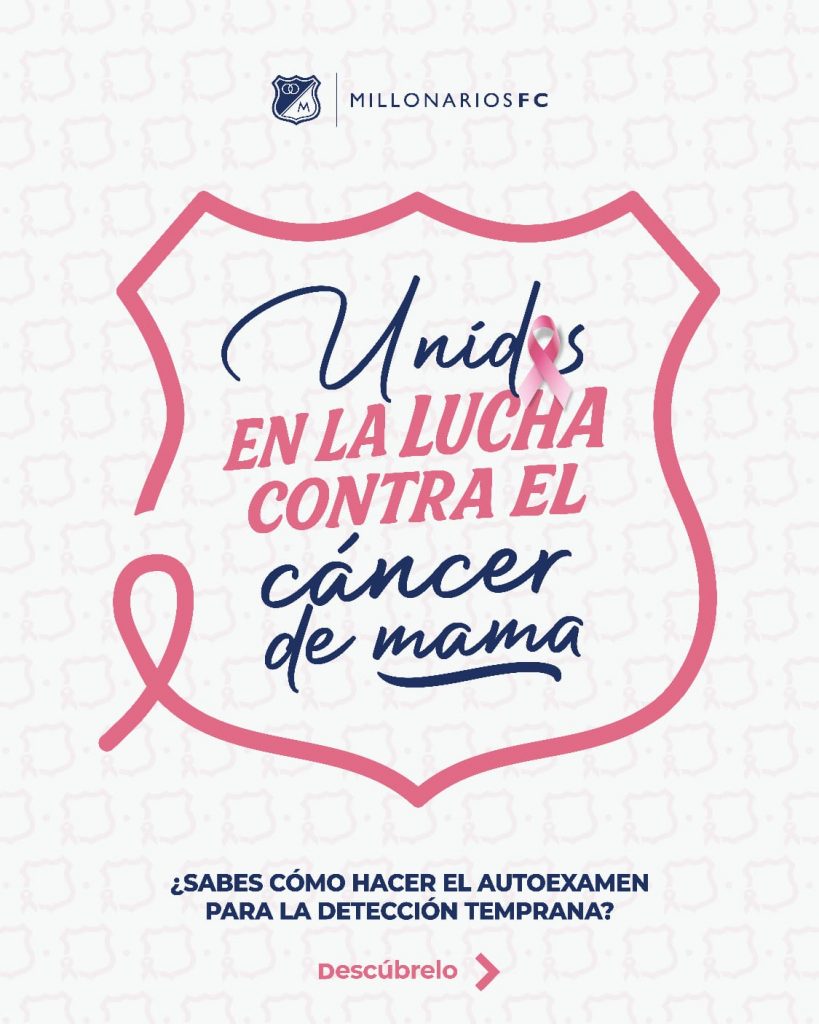 Octubre es el mes en el que se celebra la sensibilización sobre el cáncer de mama, por eso Millonarios se unió a esta importante campaña para concientizar a todos sus hinchas. La invitación es que los ‘embajadores’ asistan al estadio El Campín para el partido contra Atlético Bucaramanga vistiendo una prenda rosada.