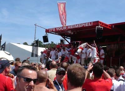 Pacho en el Mundial de Fútbol 2006…! Más con la hinchada alemana. Obviamente son los locales y su pasión al futbol se ve por todo lado!!!