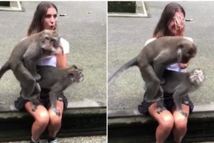 Monos tienen sexo sobre las piernas de una joven y hacen estallar de risa las redes sociales