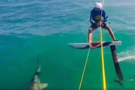 ¡Wow! El increíble momento en el que surfista pierde el equilibrio tras tropezar con un tiburón