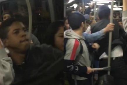 ¡A puños y patadas! Brutal pelea entre colombianos y venezolanos en un Transmilenio