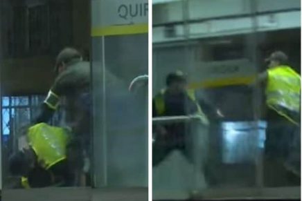A ‘puño y pata’ se fueron dos auxiliares de Policía en estación de Transmilenio